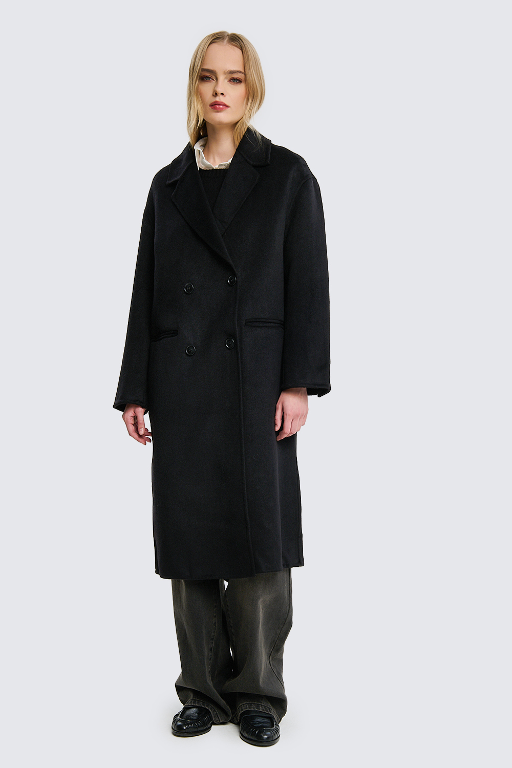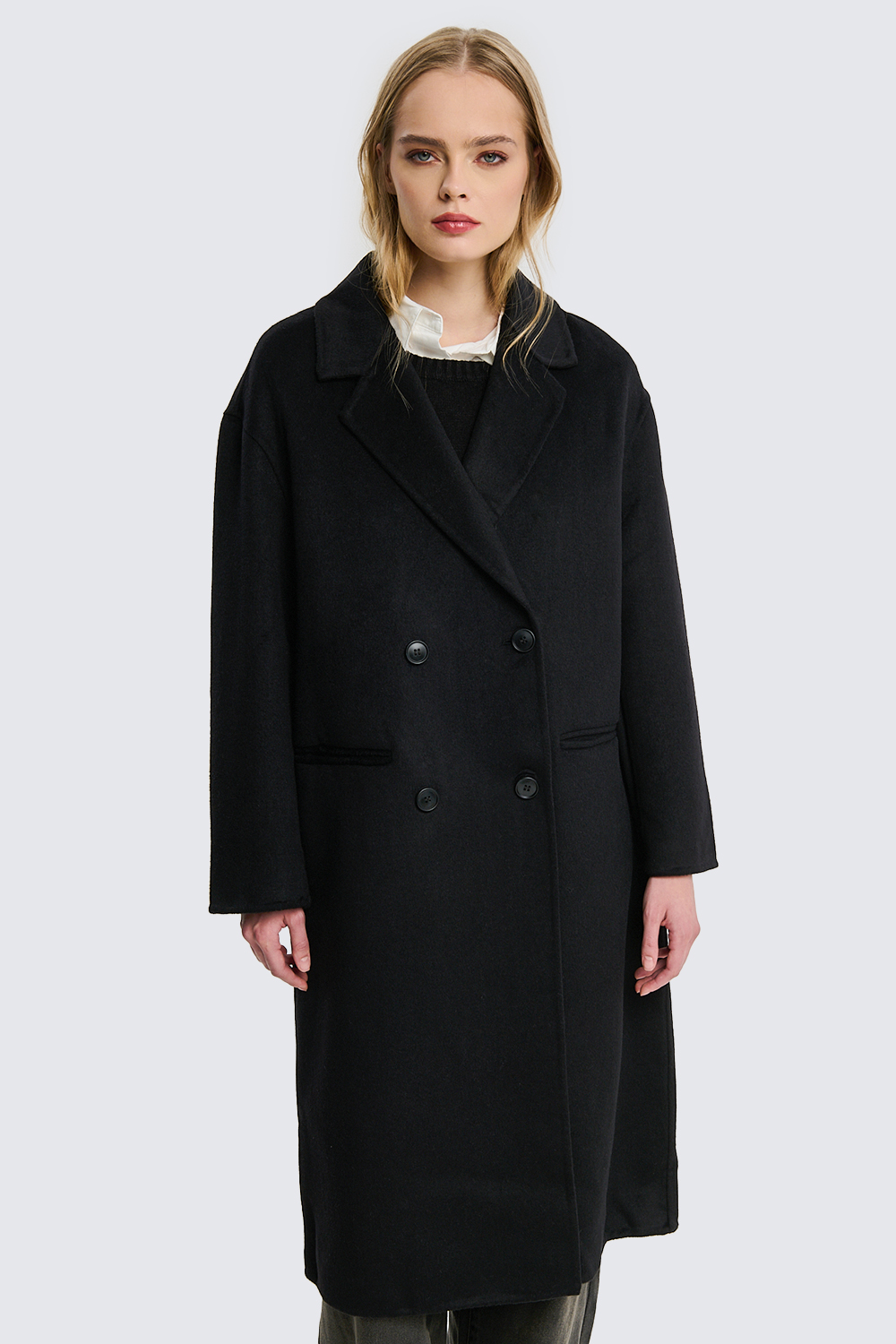 Cappotto lungo doppiopetto in lana