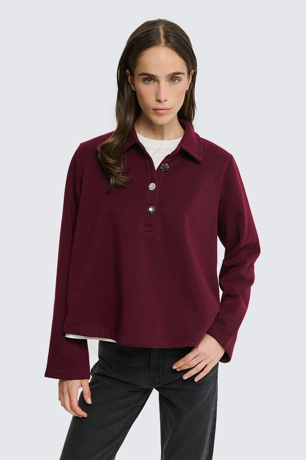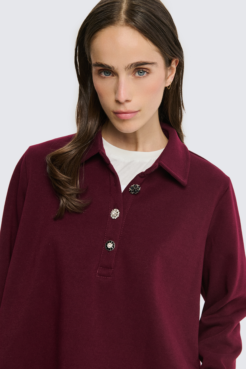 Felpa con bottoni strass