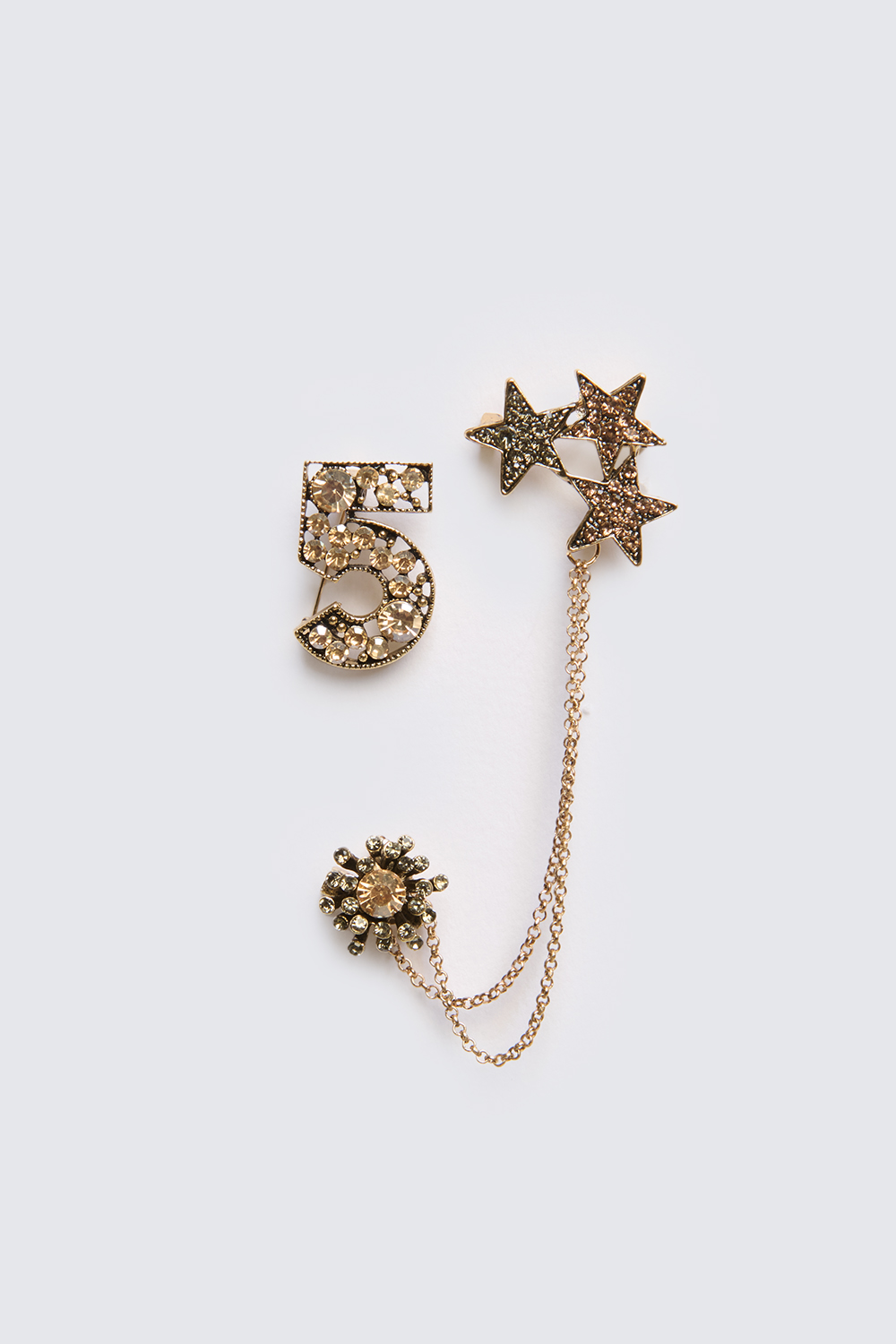 -Tre forme: numero 5, tris stelle, catena con pietra
