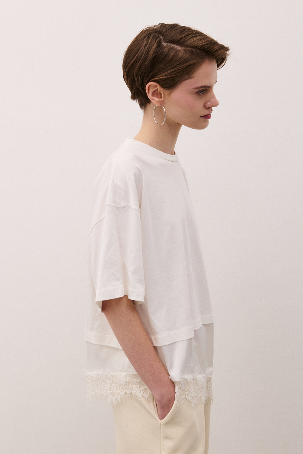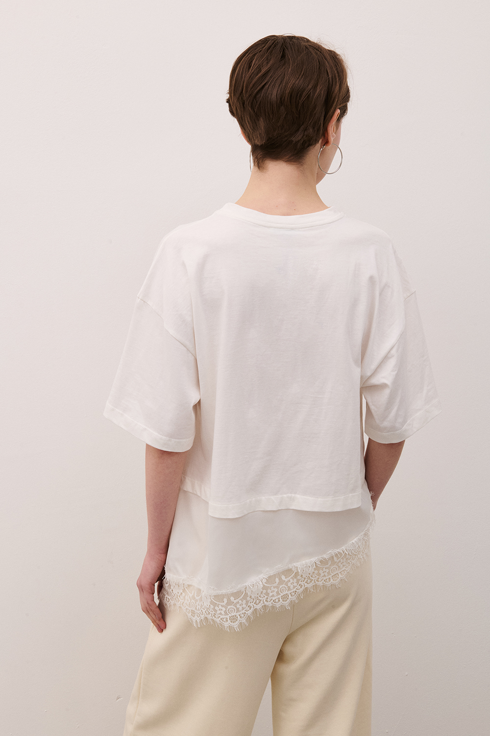 T-shirt asimmetrica con pizzo