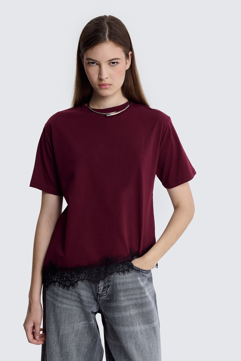 Home>Shop>T-Shirt>T-shirt asimmetrica inserto pizzo