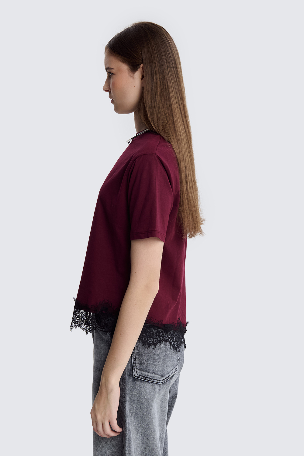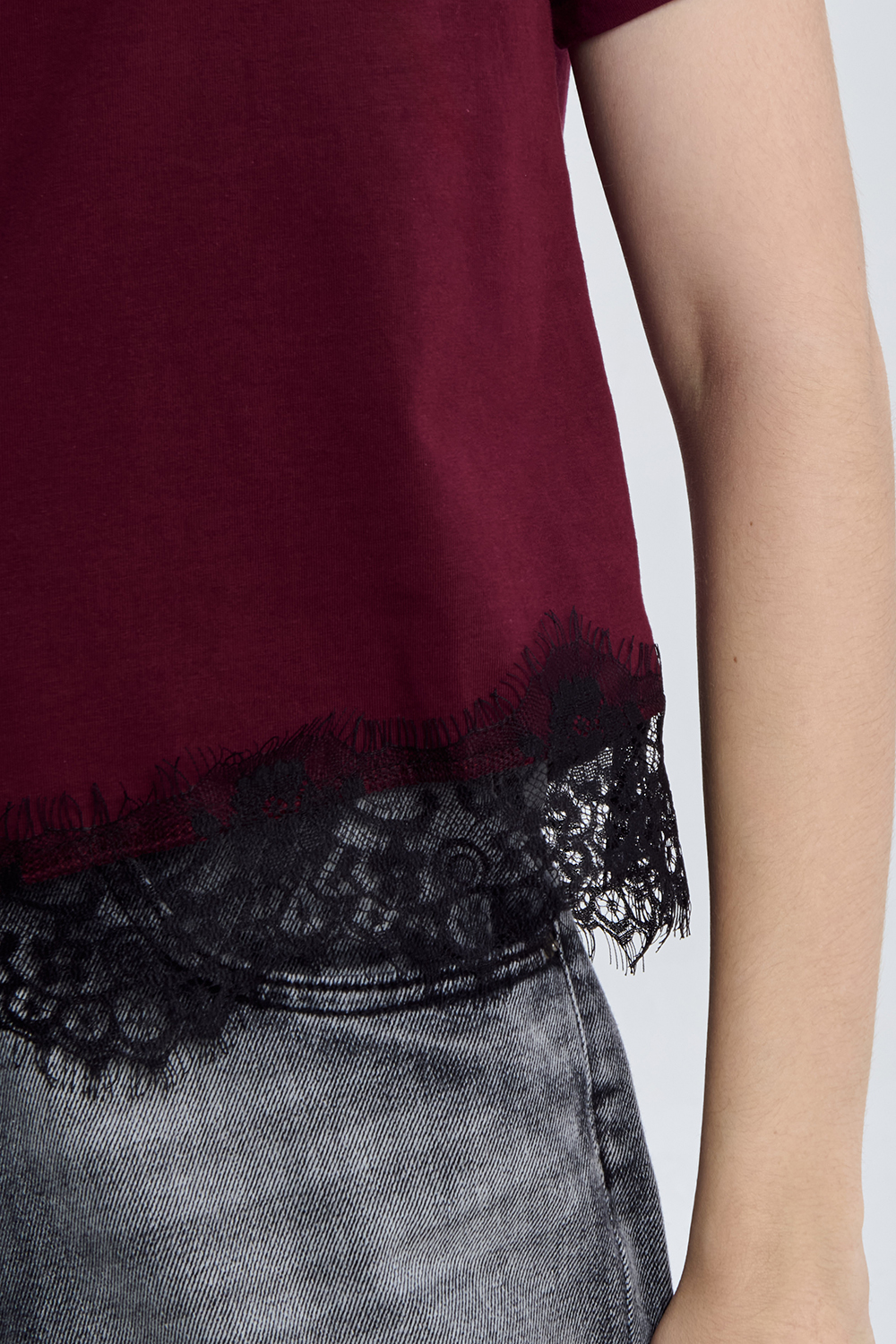 T-shirt asimmetrica inserto pizzo