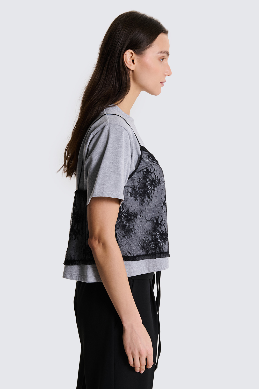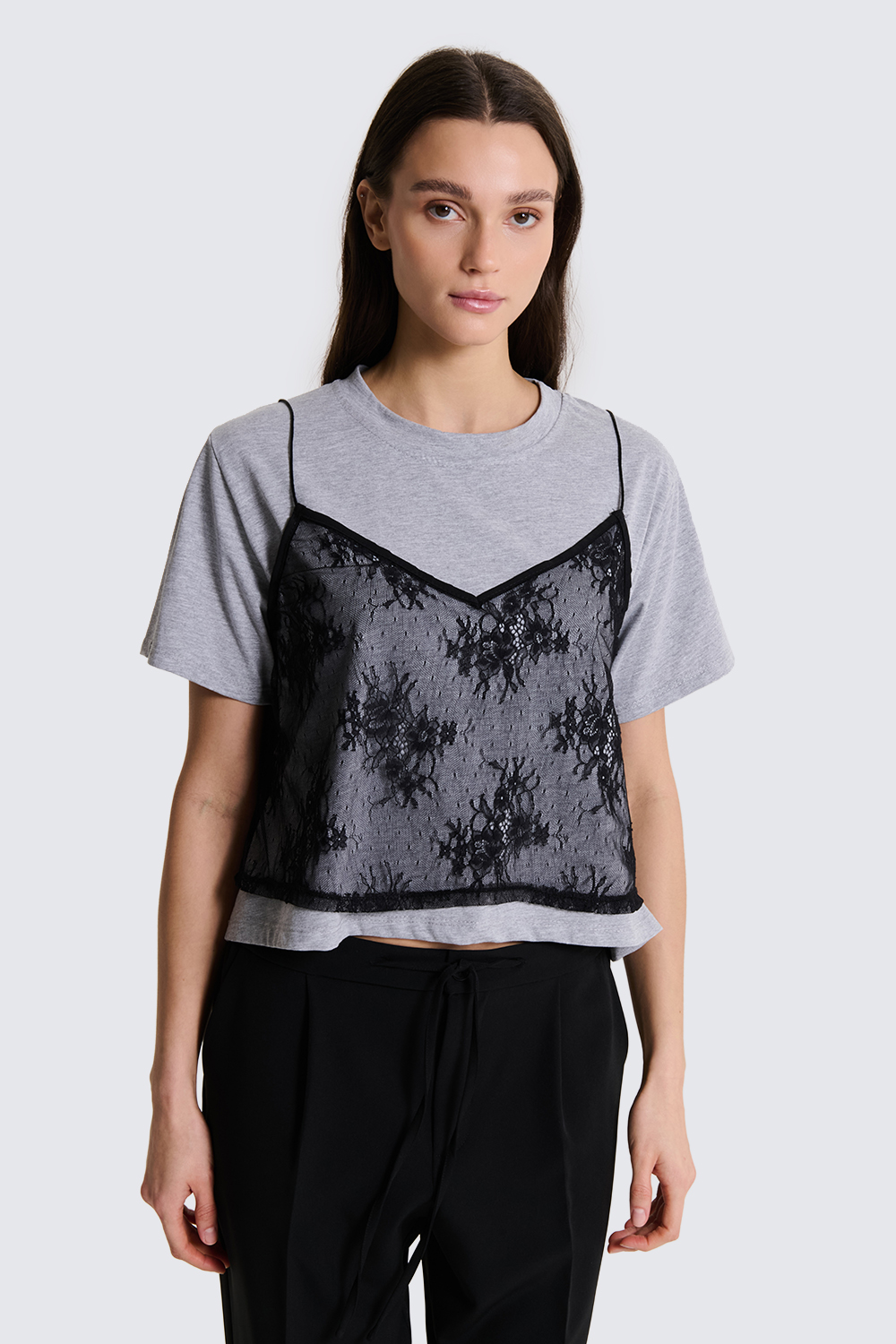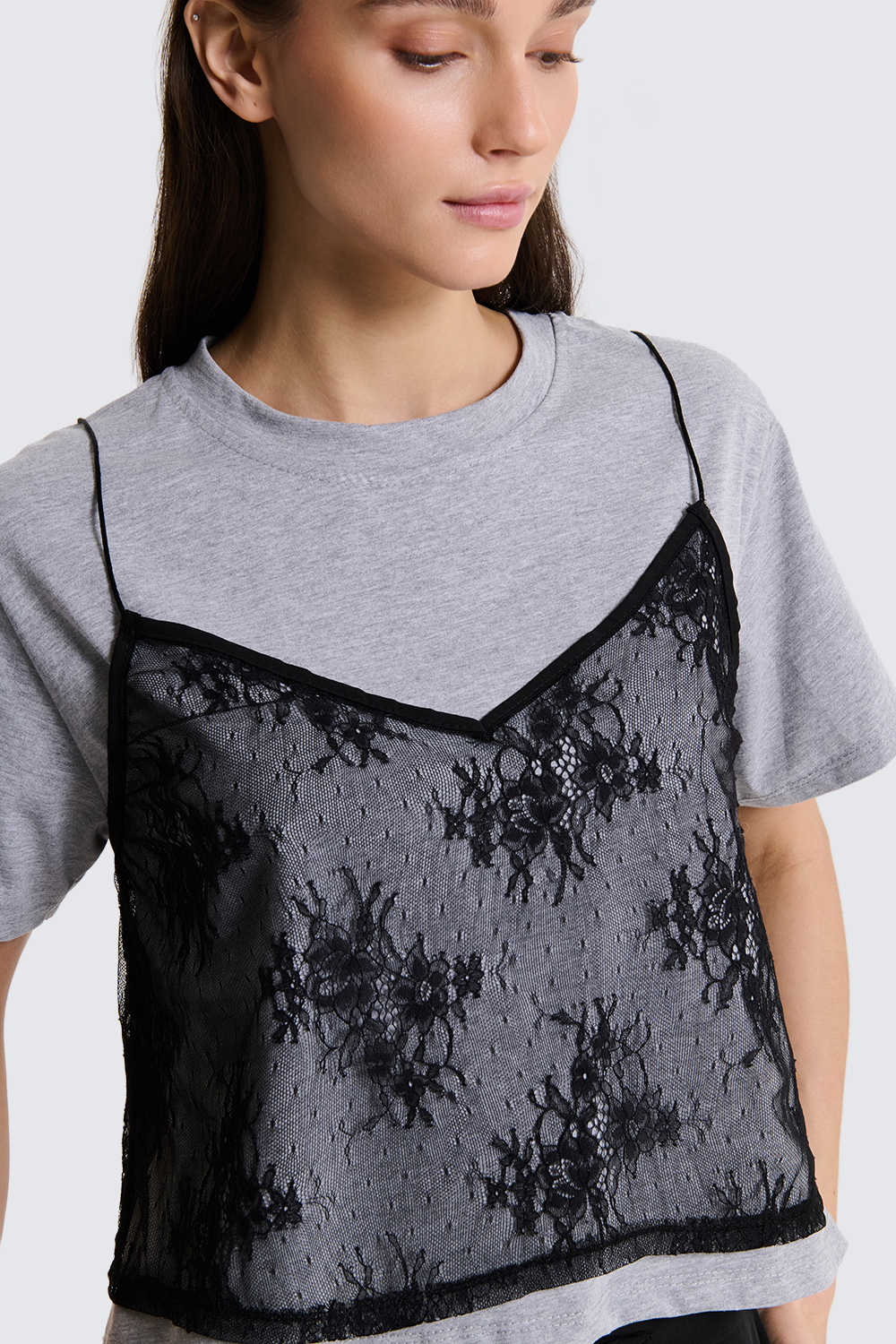 T-shirt con canotta pizzo